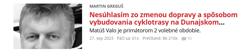 Nesúhlasím zo zmenou dopravy a spôsobom vybudovania cyklotrasy na Dunajskom nábreží